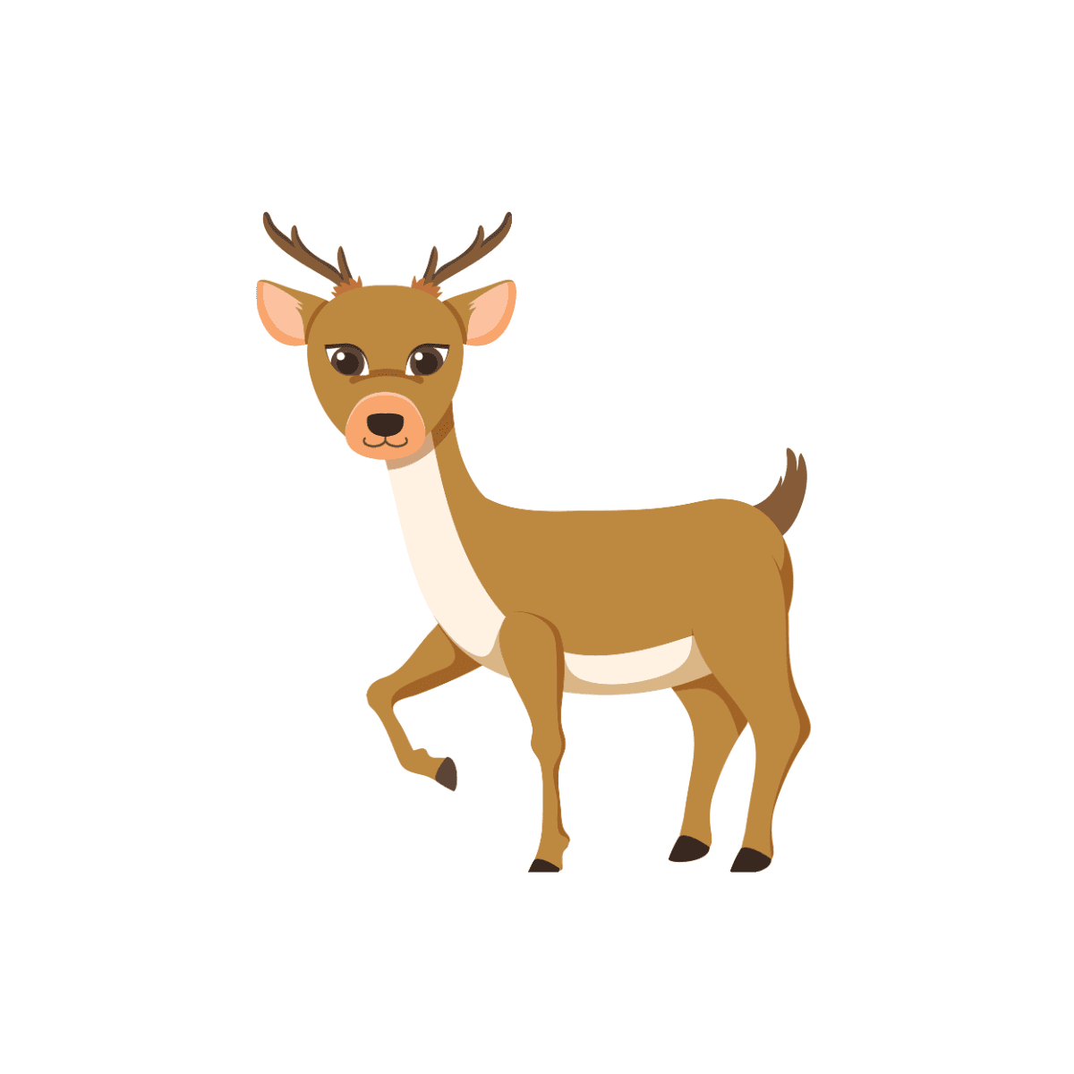 Deer are graceful and gentle animals with soft brown fur and long legs. They have big, alert eyes and often have antlers on their heads, especially the males. Deer are great at running and jumping, which helps them escape from danger in the wild. They live in forests, meadows, and grassy fields where they can find plenty of food like leaves, berries, and grass. Baby deer, called fawns, are born with white spots on their brown fur to help them blend in with their surroundings. Deer are very quiet and use their keen sense of smell and hearing to stay safe. They are beautiful animals that enjoy exploring the woods and fields.