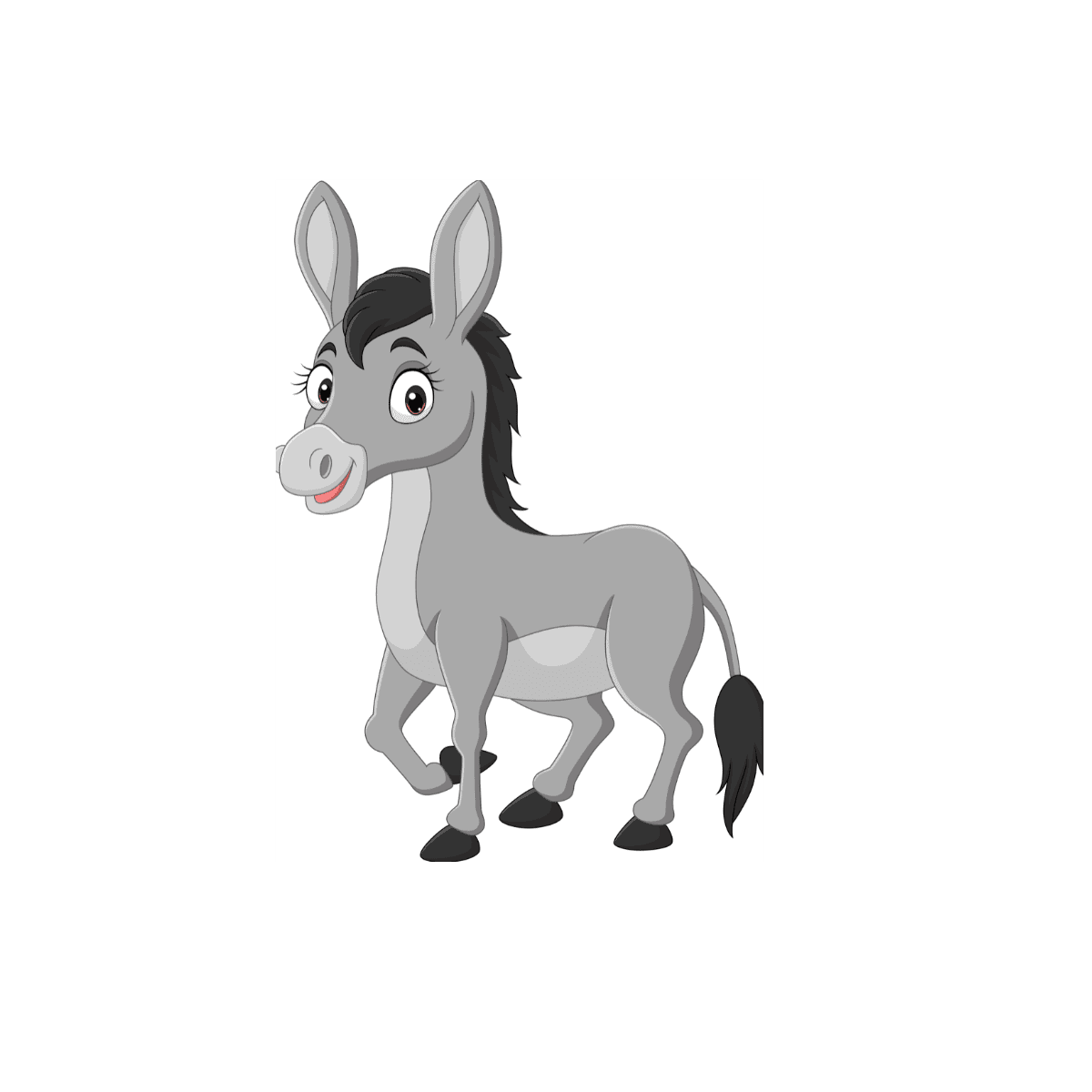 Donkeys are friendly and hardworking animals with big ears and a soft, gray or brown coat. They are similar to horses but smaller and have a more sturdy build. Donkeys are known for their strong backs and are often used to carry loads or pull carts. They have a unique braying sound that they use to talk to other donkeys and sometimes to people. Donkeys love to graze on grass and eat hay. They are very social and enjoy spending time with other donkeys. Baby donkeys, called foals, are born with a fuzzy coat and quickly learn to walk and play. Donkeys are gentle and smart, making them great companions and helpers on farms and in the countryside.
