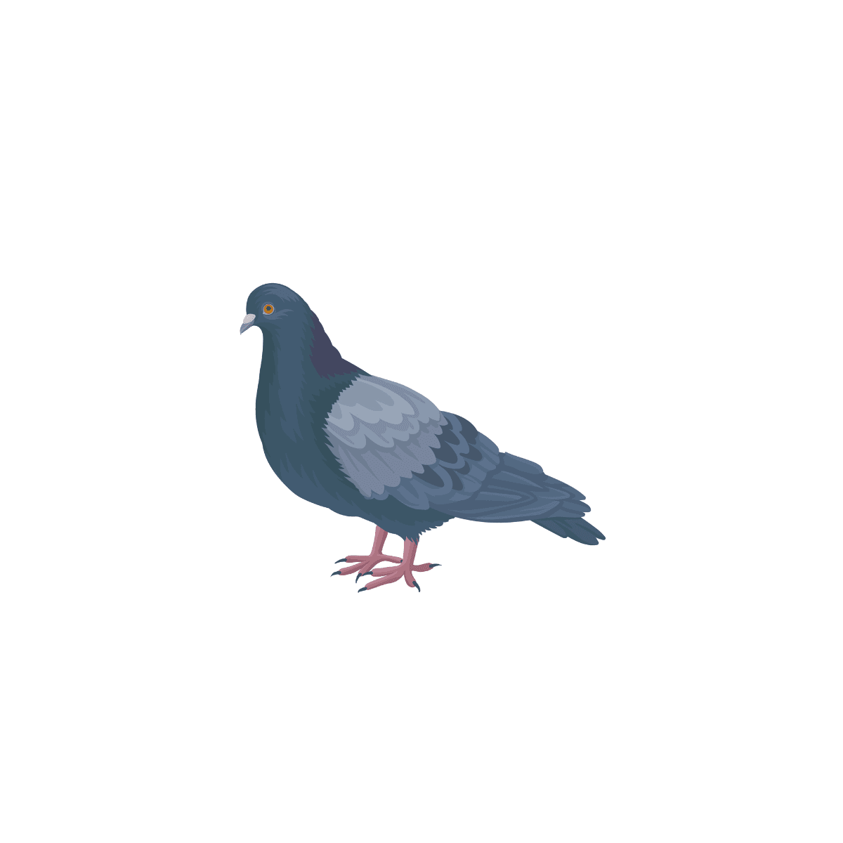 Pigeons are friendly birds you can often see in cities and parks. They have smooth, gray feathers with pretty colors like pink and green on their necks. Pigeons are great fliers and can soar high in the sky. They like to walk around and peck at the ground to find seeds, crumbs, and small bits of food. Pigeons make a soft cooing sound and can sometimes be seen in groups called flocks. They build their nests in safe places, like on buildings or in trees, where they lay eggs and take care of their baby pigeons, called squabs. Pigeons are also smart and have been used to carry messages because they can find their way home from far away!