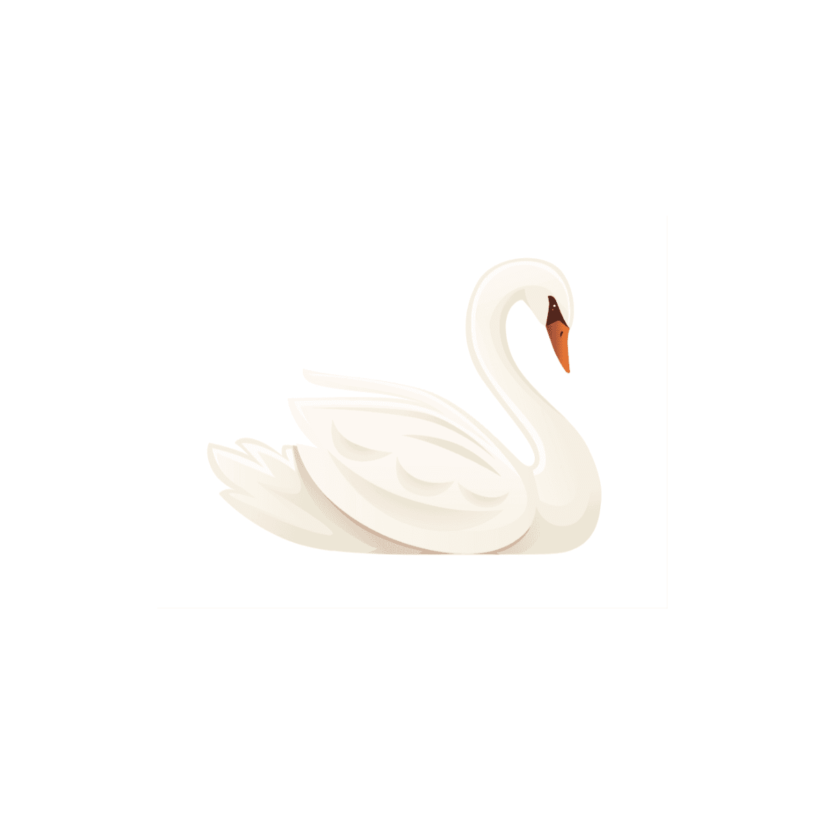 Swans are elegant birds with long, graceful necks and beautiful white feathers. They glide smoothly across the water, making them look like they’re dancing on the lake. Swans have big, strong wings that help them fly high in the sky. They live near lakes, rivers, and ponds, where they can find plenty of food like water plants, insects, and small fish. Swans are known for their gentle nature and often stay with their families, taking care of their babies together. They make soft, musical sounds and can sometimes be seen making a trumpet noise. Swans are like magical creatures that add a touch of beauty wherever they go!