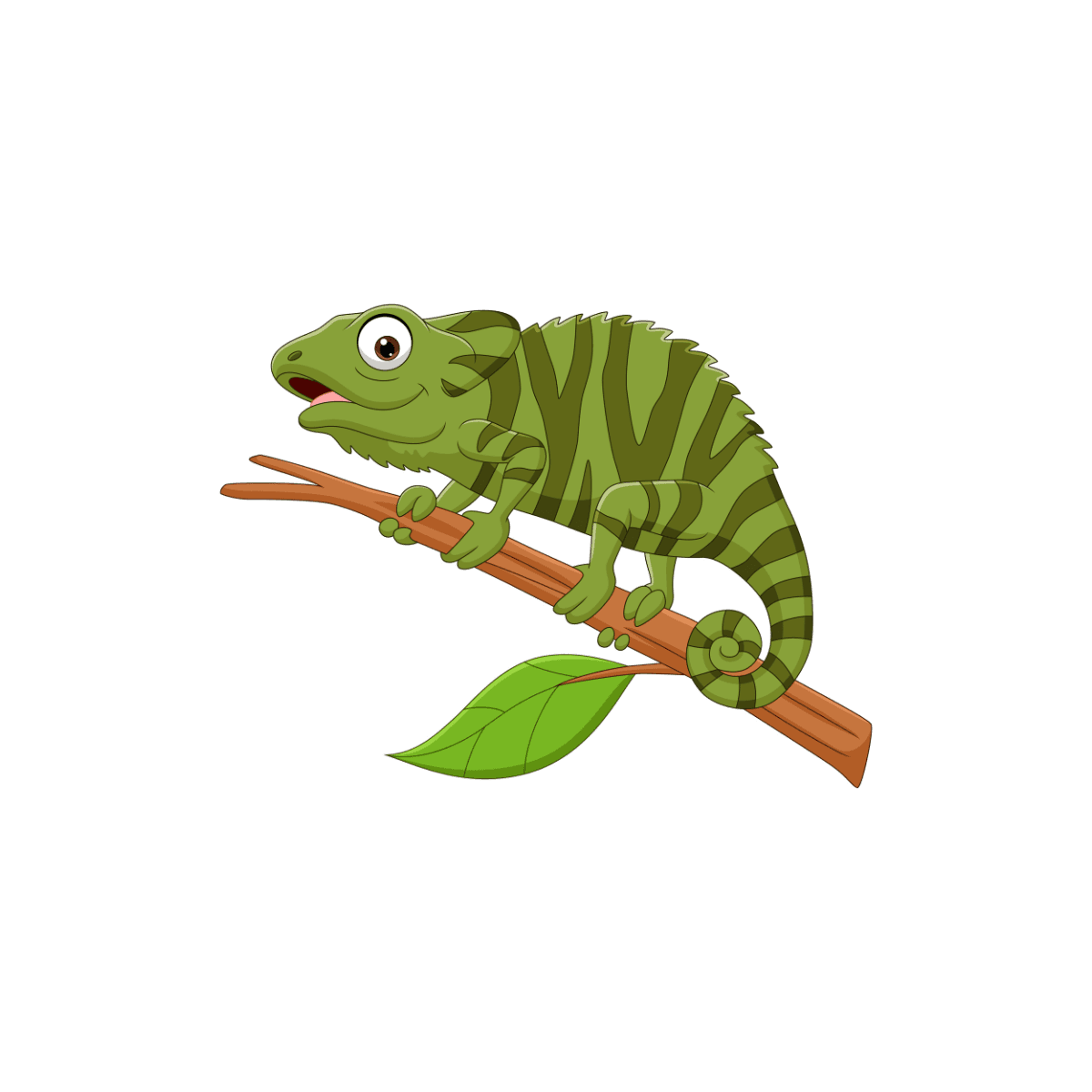 Chameleons are amazing lizards known for their ability to change colors! They live in warm places like rainforests, savannas, and even deserts, mostly in Africa and Madagascar. Chameleons have special skin cells that let them change their color to blend in with their surroundings, communicate with other chameleons, or show their mood. They have long, sticky tongues that can shoot out quickly to catch insects, which are their main food. One of the coolest things about chameleons is their eyes. They can move each eye separately, allowing them to look in two different directions at once! This helps them spot food and predators. Chameleons also have zygodactylous feet, which means their toes are grouped in two bundles, perfect for gripping branches as they climb. Their prehensile tails can curl around branches to help them balance. Baby chameleons hatch from eggs and are able to climb and change color right away. Chameleons are fascinating creatures that show us how diverse and wonderful the animal world can be!